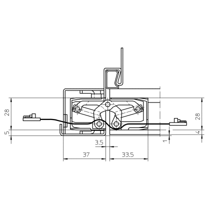 • Cable supply: The hinge features an integrated 16-wire ribbon cable with plug connection to round cable at both ends.
