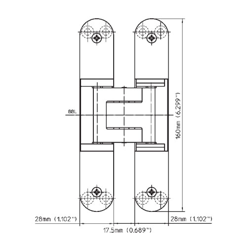 (side +/- 3.0 mm (0.118“), height +/- 3.0 mm (0.118“), compression +/- 1.0 mm (0.039“))